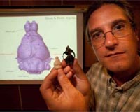 Gainesville FL (SPX) Jun 29, 2009 Researchers at the University of Florida and the University of Winnipeg have developed the first detailed images of a primitive primate brain, unexpectedly revealing that cousins of our earliest ancestors relied on smell more than sight. The analysis of a well-preserved skull from 54 million years ago contradicts some common assumptions about brain structure and evolution in the first primates. The study also narrows the possibilities for what caused primates to evolve larger brain sizes. The study is scheduled to appear online the week of June 22 in the Proceedings of the National Academy of Sciences. The skull belongs to a group of primitive primates known as Plesiadapiforms, which evolved in the 10 million years between the extinction of the dinosaurs and the first traceable ancestors of modern primates. The 1.5-inch-long skull was found fully intact, allowing researchers to make the first virtual mold of a primitive primate brain. "Most explanations on the evolution of primate brains are based on data from living primates," said lead author Mary Silcox, an anthropologist at the University of Winnipeg and research associate at UF's Florida Museum of Natural History. "There have been all these inferences about what the brains of the earliest primates would look like, and it turns out that most of those inferences are wrong." Researchers used CT scans to take more than 1,200 cross-sectional X-ray images of the skull, which were combined into a 3-D model of the brain. "A large and complex brain has long been regarded as one of the major steps that sets primates apart from the rest of mammals," said Florida Museum vertebrate paleontologist and study co-author Jonathan Bloch. "At our very humble beginnings, we weren't so special. That happened over tens of millions of years." The animal, Ignacius graybullianus, represents a side branch on the primate tree of life, Bloch said. "You can think of it as a cousin of the main line lineage that would have given rise ultimately to us." In previous research, Bloch and Silcox established that Plesiadapiforms were transitional species. Ignacius was similar to modern primates in terms of its diet and tree-dwelling but did not leap from tree to tree like modern fast-moving primates. In many ways, the early primate behaved like living primates but with a brain that was one-half to two-thirds the size of the smallest modern primates. This means that factors such as tree-dwelling and fruit-eating can be eliminated as potential causes for primates evolving larger brain sizes, Silcox said, because "the smaller brained Ignacius was already doing those things." The mold suggests a "startling combination" of features in the early primate that requires a rethinking of primate brain evolution, said Florida State University anthropologist Dean Falk, who was not involved in the study. "Hypotheses about early primate brain evolution often link keen smell with nocturnal insect-eating, and a more recently evolved increase in visual processing with fruit-eating in arboreal habitats," Falk said. The move to larger brain size occurred during an evolutionary burst that happened 10 million years after the extinction of the dinosaurs. At that point, visual features in the brain became much more prominent while the olfactory bulbs became proportionately smaller. More than likely, Bloch said, this change in brain structure and size was related to primates living in closed canopy forests that brought trees closer together and allowed for more leaping. But answering that will require the discovery and analysis of new fossils. Changes in brain size and brain structure in the early stages of primate evolution have generated enormous debates for decades. But until now, fossil evidence has been lacking. Many models of the ancestral primate brain are based on tree shrews, which come from southeast Asia and are distantly related to humans. But with some 70 million years of evolution between them and humans, "it turns out tree shrew brains are not a good model," Silcox said. Share This Article With Planet Earth