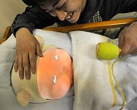 ![]() ![]() Tsukuba, Japan (AFP) March 10, 2010 It giggles and wiggles its feet when you shake its rattle, but will get cranky and cry from too much tickling: Meet Yotaro, a Japanese robot programmed to be as fickle as a real baby. The cuddly baby-bot looks unearthly with a pair of luminous blue eyes and oversized cheeks, but engineering students are hoping it will teach young people the pleasures of parenting as Japan faces a demographic ... read more |