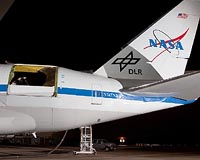 ![]() ![]() Edwards, CA (SPX) Dec 21, 2009 A NASA jumbo jet that will help scientists unlock the origins of the universe with infrared observations reached a milestone Friday when doors covering the plane's telescope were fully opened in flight. The Stratospheric Observatory for Infrared Astronomy, a modified 747 jet known as SOFIA, flew for one hour and 19 minutes, which included two minutes with the telescope's doors fully opened ... read more |