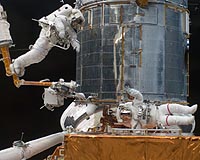 The instrument complement on HST COS (new): The Cosmic Origins Spectrograph will be the most sensitive ultraviolet spectrograph ever flown on Hubble. It is a slitless spectrograph designed to study the large-scale structure of the Universe by tracing hydrogen Lyman-alpha absorptions, the formation of galaxies, the chemical evolution of galaxies and the interstellar medium. WFC3 (new): The Wide Field Camera 3 offers imaging capabilities from the UV through optical to the IR. It is particularly suitable for identifying galaxies in the very early Universe, and for studies of star formation and the chemical enrichment history of galaxies, type Ia supernovae and high-redshift galaxy formation. ACS (repaired): The Advanced Camera for Surveys has produced some of the most iconic images from the Hubble Space Telescope in recent years. In 2007, five years after it was installed on Hubble, an electronic fault resulted in the loss of the Wide Field and High Resolution Channels. Repairs carried out by astronauts during SM4 restored the Wide Field Channel. Sky surveys with this channel have been used to study the nature and distribution of galaxies providing valuable data on the number of galaxies in the universe and determining the epoch of galaxy formation. STIS (repaired): The Space Telescope Imaging Spectrograph combines a camera with a spectrograph, and covers a wide range of wavelengths from the near-infrared region into the ultraviolet. It ceased operations in August 2004, after 7.5 years of excellent performance, due to a power supply failure. Astronauts replaced a failed electronics board during SM4 thus restoring STIS to full use. STIS has been used to search for massive black holes, to map fine details of numerous celestial objects, and to obtain physical diagnostics, such as chemical composition, temperature, density and velocity of rotation in a wide variety of celestial objects. NICMOS: The Near Infrared Camera and Multi-Object Spectrometer (NICMOS) provides IR imaging and limited spectroscopic observations of astronomical targets. No intervention was needed for NICMOS during SM4. While NICMOS will be largely superceded by the near infrared channel of WFC3 at wavelengths less than 1.7 microns, it will continue to provide unique observing capabilities between 1.7 and about 2.5 microns. NICMOS is well suited to the study of protostellar clouds, young star clusters and brown dwarfs, obscured active galaxy nuclei, temporal changes in planetary atmospheres, young protogalaxies, and protoplanetary disks. FGS: Hubble has three Fine Guidance Sensors onboard. Two are used to point and lock the telescope on the target, and the third can be used for astrometric measurements - which provide stellar distances and orbital parameters for binary star systems. One FGS was replaced during SM4 thus extending the lifetime of Hubble's pointing control system. Share This Article With Planet Earth