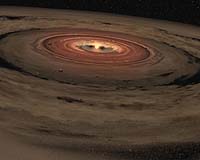 Moffett Field CA (SPX) Oct 08, 2009 Some stars are lonely behemoths, with no surrounding planets or asteroids, while others sport a skirt of attendant planetary bodies. New research published this week in The Astrophysical Journal Letters explains why the composition of the stars often indicates whether their light shines into deep space, or whether a small fraction shines onto orbiting planets. When a star forms, collapsing from a dense cloud into a luminous ball, it and the disk of dust and gas orbiting it reflect the composition of that original cloud and the elements within it. While some clouds are poor in heavier elements, many have a wealth of these elements. These are the dirty stars that are good solar system hosts. The research may help astrobiologists in the search for habitable planets beyond our own solar system. "When you observe stars, the ones with more heavy elements have more planets," says co-author Mordecai-Mark Mac Low, Curator of Astrophysics at the American Museum of Natural History. "In other words, what's in the disk reflects what's in the star. This is a common sense result." Observation of distant solar systems shows that exoplanets, or planets that orbit stars other than the sun, are much more abundant around stars that have a greater abundance of elements heavier than helium, like iron and oxygen. These elements are the ones that can turn into rocks or ice. The new simulations by Mac Low and his colleagues Anders Johansen (Leiden Observatory in the Netherlands) and Andrew Youdin (Canadian Institute of Theoretical Astrophysics at the University of Toronto) compute just how planets and other bodies form as pebbles clump into mini-planets referred to as planetesimals. Their current work hinges on their previously published research (in Nature in 2007) that explains why rocks orbiting a star within the more slowly-revolving gas disk are not quickly dragged into the star itself because of the headwinds they feel. Like bicyclists drafting behind the leader in the Tour de France, the rocks draft behind each other, so that in orbits with more rocks, they feel less drag and drift towards the star more slowly. Rocks orbiting further out drift into those orbits, until there are so many that gravity can form them into mini-planets. This concentration of orbiting rocks in a gas disk is called a "streaming instability" and is the theoretical work of co-author Youdin. "It's a run-away process. When a small group of rocks distorts the flow of gas, many others rush to line up like lazy cyclists and matter accumulates very quickly," he says. The team was able to build this mechanism-drag leading to clumping-into a three-dimensional simulation of gas and solid rocks orbiting a star. Their results show that when pebbles, made of heavy elements, constitute less than one percent of the gas mass, clumping is weak. But if the fraction of pebbles is increased slightly, the clumping increases dramatically and quickly results in the accretion of sufficient material to make larger-scale planetesimals. These mini-planets work as planetary building blocks, merging over millions of years to form planets. In short, clumping of pebbles, when the fraction of solids in the gas is high enough, is the recipe for mini-planet formation, a crucial intermediate step in forming planets. "There is an extremely steep transition from not being able to make planets at all to easily making planets, by increasing the abundance of heavy elements just a little," says lead author Johansen. "The probability of having planets almost explodes." Youdin adds that "There's an inherent advantage in being born rich, in terms of solid rocks. But less advantaged systems, like our own solar system, can still make planets if they work to marshal their resources and hang onto their solids as the gas evaporates away. So the sun is middle-class, rather than rich." The sun's abundance of heavy elements suggests its protoplanetary disk (the disk from which the solar system formed) had close to the critical ratio of pebbles to gas; if the abundance of heavy elements had been slightly less, planetesimals and planets would have been far less likely to form, and we would not be here to study the question. Share This Article With Planet Earth
