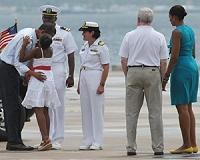 ![]() ![]() Panama City, Florida (AFP) Aug 15, 2010 US President Barack Obama and his daughter have taken a dip in the Gulf of Mexico in an attempt to reassure Americans that, despite a massive oil spill, its waters remain safe for tourists. The president, First Lady Michelle Obama, and their younger daughter, Sasha, traveled to this Florida panhandle city to talk to local officials and business leaders, and highlight the region's tourist att ... read more |