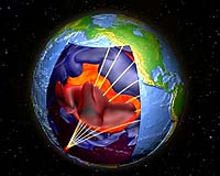 Berkeley CA (SPX) Dec 20, 2010 A University of California, Berkeley, geophysicist has made the first-ever measurement of the strength of the magnetic field inside Earth's core, 1,800 miles underground. The magnetic field strength is 25 Gauss, or 50 times stronger than the magnetic field at the surface that makes compass needles align north-south. Though this number is in the middle of the range geophysicists predict, it puts constraints on the identity of the heat sources in the core that keep the internal dynamo running to maintain this magnetic field. "This is the first really good number we've had based on observations, not inference," said author Bruce A. Buffett, professor of earth and planetary science at UC Berkeley. "The result is not controversial, but it does rule out a very weak magnetic field and argues against a very strong field." A strong magnetic field inside the outer core means there is a lot of convection and thus a lot of heat being produced, which scientists would need to account for, Buffett said. The presumed sources of energy are the residual heat from 4 billion years ago when the planet was hot and molten, release of gravitational energy as heavy elements sink to the bottom of the liquid core, and radioactive decay of long-lived elements such as potassium, uranium and thorium. A weak field - 5 Gauss, for example - would imply that little heat is being supplied by radioactive decay, while a strong field, on the order of 100 Gauss, would imply a large contribution from radioactive decay. "A measurement of the magnetic field tells us what the energy requirements are and what the sources of heat are," Buffett said. About 60 percent of the power generated inside the earth likely comes from the exclusion of light elements from the solid inner core as it freezes and grows, he said. This constantly builds up crud in the outer core. The Earth's magnetic field is produced in the outer two-thirds of the planet's iron/nickel core. This outer core, about 1,400 miles thick, is liquid, while the inner core is a frozen iron and nickel wrecking ball with a radius of about 800 miles - roughly the size of the moon. The core is surrounded by a hot, gooey mantle and a rigid surface crust. The cooling Earth originally captured its magnetic field from the planetary disk in which the solar system formed. That field would have disappeared within 10,000 years if not for the planet's internal dynamo, which regenerates the field thanks to heat produced inside the planet. The heat makes the liquid outer core boil, or "convect," and as the conducting metals rise and then sink through the existing magnetic field, they create electrical currents that maintain the magnetic field. This roiling dynamo produces a slowly shifting magnetic field at the surface. "You get changes in the surface magnetic field that look a lot like gyres and flows in the oceans and the atmosphere, but these are being driven by fluid flow in the outer core," Buffett said. Buffett is a theoretician who uses observations to improve computer models of the earth's internal dynamo. Now at work on a second generation model, he admits that a lack of information about conditions in the earth's interior has been a big hindrance to making accurate models. He realized, however, that the tug of the moon on the tilt of the earth's spin axis could provide information about the magnetic field inside. This tug would make the inner core precess - that is, make the spin axis slowly rotate in the opposite direction - which would produce magnetic changes in the outer core that damp the precession. Radio observations of distant quasars - extremely bright, active galaxies - provide very precise measurements of the changes in the earth's rotation axis needed to calculate this damping. "The moon is continually forcing the rotation axis of the core to precess, and we're looking at the response of the fluid outer core to the precession of the inner core," he said. By calculating the effect of the moon on the spinning inner core, Buffett discovered that the precession makes the slightly out-of-round inner core generate shear waves in the liquid outer core. These waves of molten iron and nickel move within a tight cone only 30 to 40 meters thick, interacting with the magnetic field to produce an electric current that heats the liquid. This serves to damp the precession of the rotation axis. The damping causes the precession to lag behind the moon as it orbits the earth. A measurement of the lag allowed Buffett to calculate the magnitude of the damping and thus of the magnetic field inside the outer core. Buffett noted that the calculated field - 25 Gauss - is an average over the entire outer core. The field is expected to vary with position. "I still find it remarkable that we can look to distant quasars to get insights into the deep interior of our planet," Buffett said.
