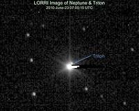 ![]() ![]() Laurel MD (SPX) Sep 06, 2010 Neptune's giant moon Triton is often called Pluto's "twin" - so what better practice target, then, for New Horizons' telescopic camera? New Horizons' Long Range Reconnaissance Imager (LORRI) snapped several photos of Neptune during the latest annual systems checkout, which ended July 30. Neptune was 23.2 astronomical units (about 2.15 billion miles!) from New Horizons when LORRI took aim a ... read more |