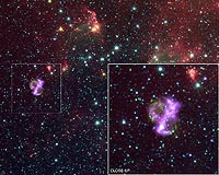![]() ![]() Boston MA (SPX) Jun 12, 2009 A new image from NASA's Chandra X-ray Observatory shows a supernova remnant with a different look. This object, known as SNR 0104-72.3 (SNR 0104 for short), is in the Small Magellanic Cloud, a small neighboring galaxy to the Milky Way. Astronomers think that SNR 0104 is the remains of a so-called Type Ia supernova caused by the thermonuclear explosion of a white dwarf. In this composite ... read more |