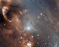 ![]() ![]() Paris, France (SPX) Mar 17, 2011 A new image from ESO's Very Large Telescope gives a close-up view of the dramatic effects newborn stars have on the gas and dust from which they formed. Although the stars themselves are not visible, material they have ejected is colliding with the surrounding gas and dust clouds and creating a surreal landscape of glowing arcs, blobs and streaks. The star-forming region NGC 6729 is part o ... read more |