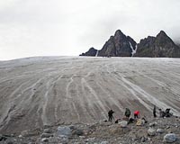 How do we chase icebergs? Naturally, if this would happen when we approach an iceberg with a zodiac boat that would not be safe. Because 90% of the iceberg's mass is under the water, its real size and shape is not easily evaluated, so we have to approach any iceberg carefully and evaluate whether we can safely obtain samples or not. If we see dirty blue ice, that means that there could be sediments waiting for us. So if the iceberg sampling is considered safe, the person that will take the samples will use an ice axe and a bag to catch the chipped of sections with sediments and ice. However, the 'sampler' will be secured by at least two people on the zodiac and the sampling will take less than five minutes/iceberg. This year three iceberg chasing trips have been carried out successfully, obtaining a total of samples from different icebergs. These samples will be returned to the University of Leeds where they will be studied further with the aim to provide novel information about the contribution of glacially derived iron-rich sediments to the iron-budget of the arctic ocean and their link to bioproductivity in the current ocean and also with respect to the Last Glacial Maximum (LGM). The samples collected this year will be compared and contrasted with other iceberg samples that have been collected during previous years in Antarctica and the Southern Ocean.