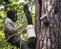 Spala, Poland (AFP) Oct 4, 2009 Perched in a lofty pine tree a dozen metres (around 30 feet) from the forest floor, Tomasz Dzierzanowski carefully removed a clump of dry grass from a hole in the wood and wafted smoke into a bees' nest. Using a wooden spatula, he delicately cut out the gleaming slices of honeycomb, and the dark, shining liquid ran down his fingers. After climbing down, he tore off a waxy chunk and tasted the powerfully-flavoured honey. Dzierzanowski is one of a group of Polish enthusiasts reviving a form of beekeeping stretching back thousands of years but abandoned more than a century ago. "There used to be thousands of bees' nests in Poland's forests, tens of thousands even," Dzierzanowski told AFP in the Spala forest, around 100 kilometres (60 miles) south of the capital, Warsaw. "For now, we've set up around 20," added Dzierzanowski, whose day job is with the local environmental department. After initially collecting honey from purely wild bees' nests, ancient hunter-gatherers gradually learned how to give the insects a helping hand by cutting holes in trees and leaving honeycomb to attract a swarm. Under that ancestral method, the subsequent nest was opened just twice a year: once in the spring to check how well the bees have survived the winter, and again in the autumn to harvest the honey. The practice persisted in Poland until the end of the 19th century, gradually losing ground because honey from the growing number of beehive farms was cheaper and the forests were hit by large-scale felling. A natural mishap in the 1980s wiped out the remaining wild bees buzzing around Poland's forests -- a disease of Asian origin carried by a parasitic mite called Varroa destructor. -- Forest honey has more micronutrients -- ------------------------------------------ The current revival then is also a total reintroduction of the insect after a three-decade absence. It comes thanks to a meeting of minds between the global environmental group World Wide Fund for Nature (WWF), two Polish national parks, enthusiasts such as Dzierzanowski, and a group of beekeepers from Bashkortostan, a region of Russia near the Ural Mountains. "We discovered that they still harvested honey from trees in Bashkortostan," said Przemyslaw Nawrocki, who is in charge of the project at the WWF. "We got in touch with the Bashkir beekeepers who hosted us there and patiently taught us their craft. Last year, they came to Poland to set up the first hives," he added. The Poles also spent their time trawling through museums to learn about the ancient method, making precision copies of the tools of their ancestors. "According to the archives, they used to harvest between six and 10 kilos (13 to 22 pounds) of honey per tree. Our maximum is around three kilos (around seven pounds). But it's only our second year of harvesting, so we need to wait a while longer," said Dzierzanowski. Tree-honey is distinctive -- Dzierzanowski's harvest had a deep-gold colour, an initially smoky taste, and wasn't over-sweet -- and is traditionally eaten mixed with remainders of pollen and chewy wax. "Forest honey is much better than other kinds because it contains seven times more micronutrients," said Nawrocki. In addition, it is a delight for organic food fans: the forest nests and the bees' pollen-gathering territory lie far from the fertiliser- and pesticide-strewn fields of agribusiness. Besides tickling the palate, bringing back honey-harvesting has a broader ecological goal. "In the past, bees were an integral part of the forests, and played a role in their biodiversity," Nawrocki explained. While the amount of honey harvested is still tiny, the enthusiasts dream of a day when there will be thousands of such nests across the country. Another long-term goal is to get Polish tree-honey inscribed in a European Union register of produce that is rooted in specific regions of the 27-nation bloc. Share This Article With Planet Earth