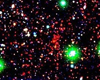 Riverside CA (SPX) Jul 03, 2009 An international team of researchers led by a UC Riverside astronomer has completed the largest ever survey designed to find very distant clusters of galaxies. Named the Spitzer Adaptation of the Red-sequence Cluster Survey, "SpARCS" detects galaxy clusters using deep ground-based optical observations from the CTIO 4m and CFHT 3.6m telescopes, combined with Spitzer Space Telescope infrared observations. In a universe which astronomers believe to be 13.7 billion years old, SpARCS is designed to find clusters, snapped as they appeared long ago in time, when the universe was 6 billion years old or younger. Clusters of galaxies are rare regions of the universe consisting of hundreds of galaxies containing trillions of stars, plus hot gas and mysterious dark matter. Most of the mass in clusters is actually in the form of invisible dark matter which astronomers are convinced exists because of its influence on the orbits of the visible galaxies. An example of one of the most massive clusters found in the SpARCS survey is shown in the accompanying image. Seen when the universe was a mere 4.8 billion years old, this is also one of the most distant clusters ever discovered. Many similar-color red cluster galaxies can be seen in the image (the green blobs are stars in our own galaxy, The Milky Way). "We are looking at massive structures very early in the universe's history," said Gillian Wilson, an associate professor of physics and astronomy who leads the SpARCS project. The SpARCS survey has discovered about 200 new cluster candidates. "It is very exciting to have discovered such a large sample of these rare objects," Wilson said. "Although we are catching these clusters at early times, we can tell by their red colors that many of the galaxies we are seeing are already quite old. We will be following up this new sample for years to come, to better understand how clusters and their galaxies form and evolve in the early universe." Share This Article With Planet Earth
