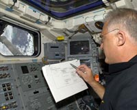 Houston TX (SPX) Jul 30, 2009 The seven-member crew was awakened Wednesday morning to the song "Yellow" by the band Coldplay, uplinked for Pilot Doug Hurley in honor of his International Space Station fly-around. Space shuttle Endeavour undocked Tuesday from the International Space Station at 1:26 p.m. EDT. After completing a fly-around of the space station, Endeavour performed a maneuver to separate from the station. Shuttle astronauts will inspect Endeavour's heat shield one more time today as they begin to set their sights on a Friday landing. Endeavour's thermal protection system was cleared for landing earlier in the flight. This late inspection will ensure that there has been no impact damage from micrometeoroids or space junk during its docked operations or fly-around of the station.