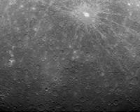 Washington (AFP) March 30, 2011 NASA celebrated Wednesday hundreds of stunning photographs from the Mercury MESSENGER probe as it began a year-long mission to orbit and map the solar system's mysterious innermost planet. After more than six and a half years and a 4.9-billion-mile (7.9-billion-kilometer) journey, the spacecraft -- which stands for MErcury Surface, Space ENvironment, GEochemistry, and Ranging -- finally entered the planet's orbit on March 17. On Tuesday, it began unlocking the secrets of a planet where temperatures reach a mind-boggling 800 degrees Fahrenheit (427 degrees Celsius) during the day but plummet to minus 150 degrees (minus 100 degrees Celsius) at night. "Early this morning, at 5:20 am EDT (0920 GMT), MESSENGER captured this historic image of Mercury," NASA said. "This image is the first ever obtained from a spacecraft in orbit about the solar system's innermost planet." The upper part of the first image showed an unusual, dark-rayed crater called Debussy, while the lower part revealed a portion of Mercury near its south pole that has never before been witnessed by spacecraft, according to NASA. The spacecraft snapped 363 images over the next six hours and released more on Wednesday in conjunction with an expert press conference to discuss the findings. "The entire MESSENGER team is thrilled that spacecraft and instrument checkout has been proceeding according to plan," said mission spokesman Sean Solomon of the Carnegie Institution for Science in Washington. "The first images from orbit and the first measurements from MESSENGER's other payload instruments are only the opening trickle of the flood of new information that we can expect over the coming year. The orbital exploration of the solar system's innermost planet has begun." NASA scientists aim to combine data from two earlier fly-bys and from Mariner 10, a spacecraft that made three passes of Mercury in 1974 and 1975, to map out the crater-filled surface of the planet. MESSENGER will begin continuous mapping on April 4, orbiting the planet every 12 hours at a minimum altitude of 124 miles (200 kilometers). Mercury is the closest planet to the sun, and because of the high risks of its proximity -- the sun's enormous gravitational pull and massively high levels of radiation -- it is one of the most mysterious bodies in the solar system, even though it is relatively close to Earth. Earlier visits have shown scientists that enormous volcanic eruptions produced many of its expansive plains, littered with meteor craters, and that its magnetic field appears to be actively generated in a molten iron core. MESSENGER, a 1,067-pound (485-kilogram) robotic probe, was launched in August 2010, making one flyby of the Earth, two of Venus and three of Mercury, the smallest of the eight planets, before entering its new orbit.