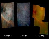 ![]() ![]() Berlinm, Germany (SPX) Jan 14, 2011 A mid-infrared mosaic image from the SOFIA airborne observatory offers new information about processes of star formation in and around the nebula Messier 42, in the constellation Orion. The image data were acquired using the Faint Object Infrared Camera for the SOFIA Telescope, or FORCAST, (principal investigator: Terry Herter, Cornell University) during SOFIA's Short Science 1 observing p ... read more |