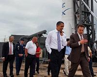 Washington (AFP) June 28, 2010 President Barack Obama on Monday laid out an overarching new US policy on outer space, calling for more international and private sector cooperation on exploration, climate change and orbiting debris. The release of the new policy did not contain new, specific announcements, but served as a blueprint for government departments and foreign governments on US goals and philosophy on space exploration and exploitation. "Our policy reflects the ways in which our imperatives and our obligations in space have changed in recent decades," Obama said in a statement. "No longer are we racing against an adversary --- in fact, one of our central goals is to promote peaceful cooperation and collaboration in space." Obama was in April forced to insist that he was "100 percent" committed to NASA, after unveiling plans to scrap an over-budget Moon launch mission, and concentrate on sending US astronauts into Mars orbit within three decades. The document issued Monday, while not limited to NASA, restated the goal of advancing a "bold new approach" to space exploration and human and robotic exploration of the solar system. It restated the administration's strategy of seeking partnerships with commercial spaceflight organizations to transport crew and cargo to and from the International Space Station, and to begin manned flights to "new destinations" by 2025. "We set ambitious goals for NASA: ramping up robotic and human space exploration, with our sights set on Mars and beyond, to improve the capacity of human beings to learn and work safely beyond the Earth for extended periods of time," Obama said. With the US budget deficit clouding government spending, Obama committed to seeking cooperation "to the greatest extent practicable" in space science and exploration, Earth observation, and climate change research. The United States will also seek partners in space to improve environmental data, disaster mitigation and surveillance of space for debris monitoring. The new policy also states continued US commitment to use space systems to support national security to enhance Washington's capacity to identify threats and defeat any attempt by enemies to attack US or allied space systems. NASA administrator Charles Bolden said the new policy embraced NASA's historical role of researching and developing launch systems but challenged the agency to embrace new roles. He also described the new policy as including a "job-creating" transportation system for manned low-Earth orbit. Some critics of Obama's plans to rule out the over-budget Constellation Moon launch system have cited the impact on employment of the decision in space industry in Florida and Texas. In a nod to those critics, Obama had previously announced that he would retain and scale down a portion of the Constellation project, the Orion capsule. The White House says it will boost NASA's budget by six billion dollars over five years and will create 2,500 jobs in Florida by 2012. Once the current shuttle program ends early next year, the United States will rely on Russia's Soyuz rockets to carry astronauts to the space station until a commercial US launcher can be developed. That is scheduled for 2015. Obama's policy document did not mention specific nations that might be involved in cooperating with the US space program. But French Higher Education Minister Valerie Pecresse said after a visit to the United States last week that France had listened to the administration's plans for space cooperation with "great interest" and formed a joint working group with Washington on the issue.