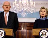 ![]() ![]() Singapore (AFP) Nov 11, 2009 A US envoy will go ahead with a landmark trip to North Korea despite a naval clash between the reclusive state and South Korea, Secretary of State Hillary Clinton said Wednesday. "We are obviously hoping that the situation does not escalate and we are encouraged by the calm reaction that has been present up until now," Clinton told reporters at Asia-Pacific talks here. "But this does not ... read more |