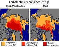 Greenbelt MD (SPX) Apr 08, 2009 The latest Arctic sea ice data from NASA and the National Snow and Ice Data Center show that the decade-long trend of shrinking sea ice cover is continuing. New evidence from satellite observations also shows that the ice cap is thinning as well. Arctic sea ice works like an air conditioner for the global climate system. Ice naturally cools air and water masses, plays a key role in ocean circulation, and reflects solar radiation back into space. In recent years, Arctic sea ice has been declining at a surprising rate. Scientists who track Arctic sea ice cover from space announced that this winter had the fifth lowest maximum ice extent on record. The six lowest maximum events since satellite monitoring began in 1979 have all occurred in the past six years (2004-2009). Until recently, the majority of Arctic sea ice survived at least one summer and often several. But things have changed dramatically, according to a team of University of Colorado, Boulder, scientists led by Charles Fowler. Thin seasonal ice - ice that melts and re-freezes every year - makes up about 70 percent of the Arctic sea ice in wintertime, up from 40 to 50 percent in the 1980s and 1990s. Thicker ice, which survives two or more years, now comprises just 10 percent of wintertime ice cover, down from 30 to 40 percent. According to researchers from the National Snow and Ice Data Center in Boulder, Colo., the maximum sea ice extent for 2008-09, reached on Feb. 28, was 5.85 million square miles. That is 278,000 square miles less than the average extent for 1979 to 2000. "Ice extent is an important measure of the health of the Arctic, but it only gives us a two-dimensional view of the ice cover," said Walter Meier, research scientist at the center and the University of Colorado, Boulder. "Thickness is important, especially in the winter, because it is the best overall indicator of the health of the ice cover. As the ice cover in the Arctic grows thinner, it grows more vulnerable to melting in the summer." The Arctic ice cap grows each winter as the sun sets for several months and intense cold sets in. Some of that ice is naturally pushed out of the Arctic by winds, while much of it melts in place during summer. The thicker, older ice that survives one or more summers is more likely to persist through the next summer. Sea ice thickness has been hard to measure directly, so scientists have typically used estimates of ice age to approximate its thickness. But last year a team of researchers led by Ron Kwok of NASA's Jet Propulsion Laboratory in Pasadena, Calif., produced the first map of sea ice thickness over the entire Arctic basin. Using two years of data from NASA's Ice, Cloud, and land Elevation Satellite (ICESat), Kwok's team estimated thickness and volume of the Arctic Ocean ice cover for 2005 and 2006. They found that the average winter volume of Arctic sea ice contained enough water to fill Lake Michigan and Lake Superior combined. The older, thicker sea ice is declining and is being replaced with newer, thinner ice that is more vulnerable to summer melt, according to Kwok. His team found that seasonal sea ice averages about 6 feet in thickness, while ice that had lasted through more than one summer averages about 9 feet, though it can grow much thicker in some locations near the coast. Kwok is currently working to extend the ICESat estimate further, from 2003 to 2008, to see how the recent decline in the area covered by sea ice is mirrored in changes in its volume. "With these new data on both the area and thickness of Arctic sea ice, we will be able to better understand the sensitivity and vulnerability of the ice cover to changes in climate," Kwok said. Related LinksICESat Earth Observation News - Suppiliers, Technology and Application