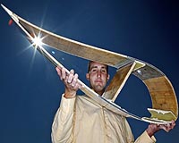West Lafayette IN (SPX) May 05, 2009 Researchers have developed a technique that uses sensors and computational software to constantly monitor forces exerted on wind turbine blades, a step toward improving efficiency by adjusting for rapidly changing wind conditions. The research by engineers at Purdue University and Sandia National Laboratories is part of an effort to develop a smarter wind turbine structure "The ultimate goal is to feed information from sensors into an active control system that precisely adjusts components to optimize efficiency," said Purdue doctoral student Jonathan White, who is leading the research with Douglas Adams, a professor of mechanical engineering and director of Purdue's Center for Systems Integrity. The system also could help improve wind turbine reliability by providing critical real-time information to the control system to prevent catastrophic wind turbine damage from high winds. "Wind energy is playing an increasing role in providing electrical power," Adams said. "The United States is now the largest harvester of wind energy in the world. The question is, what can be done to wind turbines to make them more efficient, more cost effective and more reliable?" The engineers embedded sensors called uniaxial and triaxial accelerometers inside a wind turbine blade as the blade was being built. The blade is now being tested on a research wind turbine at the U.S. Department of Agriculture's Agriculture Research Service laboratory in Bushland, Texas. Personnel from Sandia and the USDA operate the research wind turbines at the Texas site. Such sensors could be instrumental in future turbine blades that have "control surfaces" and simple flaps like those on an airplane's wings to change the aerodynamic characteristics of the blades for better control. Because these flaps would be changed in real time to respond to changing winds, constant sensor data would be critical. "This is a perfect example of a partnership between a national lab and an academic institution to develop innovations by leveraging the expertise of both," said Jose R. Zayas, manager of Sandia's Wind Energy Technology Department. Research findings show that using a trio of sensors and "estimator model" software developed by White accurately reveals how much force is being exerted on the blades. Purdue and Sandia have applied for a provisional patent on the technique. Findings are detailed in a paper being presented Monday (May 4) during the Windpower 2009 Conference and Exhibition in Chicago. The paper was written by White, Adams and Sandia engineer Mark A. Rumsey and Zayas. The four-day conference, organized by the American Wind Energy Association, attracts thousands of attendees and is geared toward industry. "Industry is most interested in identifying loads, or forces, exerted on turbine blades and predicting fatigue, and this work is a step toward accomplishing that," White said. A wind turbine's major components include rotor blades, a gearbox and generator. The wind turbine blades are made primarily of fiberglass and balsa wood and occasionally are strengthened with carbon fiber. "The aim is to operate the generator and the turbine in the most efficient way, but this is difficult because wind speeds fluctuate," Adams said. "You want to be able to control the generator or the pitch of the blades to optimize energy capture by reducing forces on the components in the wind turbine during excessively high winds and increase the loads during low winds. In addition to improving efficiency, this should help improve reliability. The wind turbine towers can be 200 feet tall or more, so it is very expensive to service and repair damaged components." Sensor data in a smart system might be used to better control the turbine speed by automatically adjusting the blade pitch while also commanding the generator to take corrective steps. "We envision smart systems being a potentially huge step forward for turbines," said Sandia's Rumsey. "There is still a lot of work to be done, but we believe the payoff will be great. Our goal is to provide the electric utility industry with a reliable and efficient product. We are laying the groundwork for the wind turbine of the future." Sensor data also will be used to design more resilient blades. The sensors are capable of measuring acceleration occurring in various directions, which is necessary to accurately characterize the blade's bending and twisting and small vibrations near the tip that eventually cause fatigue and possible failure. The sensors also measure two types of acceleration. One type, the dynamic acceleration, results from gusting winds, while the other, called static acceleration, results from gravity and the steady background winds. It is essential to accurately measure both forms of acceleration to estimate forces exerted on the blades. The sensor data reveal precisely how much a blade bends and twists from winds. The research is ongoing, and the engineers are now pursuing the application of their system to advanced, next-generation turbine blades that are more curved than conventional blades. This more complex shape makes it more challenging to apply the technique. In 2008 the United States added 8,358 megawatts of new wind-power capacity, which equates to thousands of new turbines since the average wind turbine generates 1.5 megawatts. The new capacity increased the total U.S. installed wind power to 25,170 megawatts, surpassing Germany's capacity as the world's largest harvester of wind power. "Our aim is to do two things - improve reliability and prevent failure - and the most direct way to enable those two capabilities is by monitoring forces exerted on the blades by winds," Adams said. The research is funded by the U.S. Department of Energy through Sandia National Laboratories. Sandia is a multiprogram laboratory operated by Sandia Corp., a Lockheed Martin Co., for the U.S. Department of Energy's National Nuclear Security Administration under 