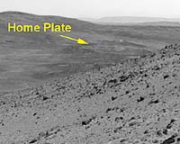 Pasadena CA (SPX) Mar 14, 2009 After initially making good progress on a new route around "Home Plate" to the east, Spirit has been struggling in local terrain on the northeast corner of Home Plate. The route is difficult because the direction is up-slope with a lot of loose, fine material denying the five-driving-wheel rover good traction. After getting about 15 meters (49 feet) away from Home Plate last week in just two drives, Spirit made only 1.4 meters of progress on Sol 1831 (Feb. 26, 2009). The next two drive sols accomplished only about 2 meters each. On Sol 1837 (March 4, 2009), Spirit had difficulty turning to face a new direction, again because of the soft terrain. The plan is to back downslope a little, turn and attack the uphill grade a little more cross-slope. As of Sol 1837 (March 4, 2009), Spirit's solar array energy production is 282 watt-hours, atmospheric opacity (tau) is 0.742, and the dust factor on the solar array is 0.320. The rover is in good health as it attempts to make its way around the northeast corner of Home Plate. Spirit's total odometry is 7,602.42 meters (4.72 miles). Related Links Mars Rovers Mars News and Information at MarsDaily.com Lunar Dreams and more