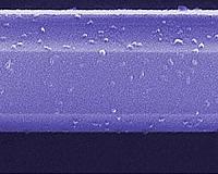For Hollywood celebrities, the term "splitsville" usually means "check your prenup." For scientists wanting to mass-produce high quality nanoribbons from boron nitride nanotubes, "splitsville" could mean "happily ever after." Scientists with the Lawrence Berkeley National Laboratory (Berkeley Lab) and the University of California (UC) Berkeley, working with scientists at Rice University, have developed a technique in which boron nitride nanotubes are stuffed with atoms of potassium until the tubes split open along a longitudinal seam. This creates defect-free boron nitride nanoribbons of uniform lengths and thickness. Boron nitride nanoribbons are projected to display a variety of intriguing magnetic and electronic properties that hold enormous potential for future devices. Nanoribbons are two-dimensional single crystals (meaning only a single atom in thickness) that can measure multiple microns in length, but only a few hundred or less nanometers in width. Graphene nanoribbons, which are made from pure carbon, carry electrons at much faster speeds than silicon, and can be used to cover wide areas and a broad assortment of shapes. Boron nitride nanoribbons offer similar advantages plus an additional array of electronic, optical and magnetic properties. "There has been a significant amount of theoretical work indicating that, depending on the ribbon edges, boron nitride nanoribbons may exhibit ferromagnetism or anti-ferromagnetism, as well as spin-polarized transport which is either metallic or semi-conducting," says physicist Alex Zettl, one of the world's foremost researchers into nanoscale systems and devices who holds joint appointments with Berkeley Lab's Materials Sciences Division (MSD) and the Physics Department at UC Berkeley, where he is the director of the Center of Integrated Nanomechanical Systems (COINS). "The unique properties of boron nitride nanoribbons are of great fundamental scientific interest and also have implications for applications in technologies that include spintronics and optoelectronics," Zettl says. "However, the facile, scalable synthesis of high quality boron nitride nanoribbons has been a significant challenge." Zettl and members of his research group met this challenge using the chemical process known as "intercalation," whereby atoms or molecules of one type are inserted between atoms and molecules of another type. James Tour at Rice University and his research group had demonstrated that the intercalation of potassium atoms into carbon nanotubes promotes a longitudinal splitting of the tubes. This prompted Zettl and Tour to collaborate on a study that used the same approach on boron nitride nanotubes, which are very similar in structure to nanotubes made from carbon. "The likely mechanism for the splitting of both carbon and boron nitride nanotubes is that potassium islands grow from an initial starting point of intercalation," Zettl says. "This island growth continues until enough circumferential strain results in a breakage of the chemical bonds of the intercalated nanotube. The potassium then begins bonding to the bare ribbon edge, inducing further splitting." This synthesis technique yields boron nitride nanoribbons of uniform widths that can be as narrow as 20 nanometers. The ribbons are also at least one micron in length, with minimal defects within the plane or along the edges. Zettl says the high quality of the edges points to the splitting process being orderly rather than random. This orderliness could explain why a high proportion of the boron nitride nanoribbons display the coveted zigzag or armchair-shaped edges, rather than other edge orientations. Edges are critical determinants of a nanoribbon's properties because the electrons along the edge of one ribbon edge can interact with the electrons along the edge of another ribbon, resulting in the type of energy gap that is crucial for making devices. For example, zigzagged edges in graphene nanoribbons have been shown to be capable of carrying a magnetic current, which makes them candidates for spintronics, the computing technology based on the spin rather than the charge of electrons. Kris Erickson, who was the lead author on the Nano Letters paper, says that, "Given the significant dependence upon boron nitride nanoribbon edges for imbuing particular electronic and magnetic properties, the high likelihood of synthesizing ribbons with zigzag and armchair edges makes our technique particularly suitable for addressing theoretical predictions and realizing proposed applications." Erickson also says it should be possible to functionalize the edges of the boron nitride nanoribbons, as these edges are terminated with chemically reactive potassium atoms following synthesis and with reactive hydrogen atoms following exposure to water or ethanol. Kris Erickson was the lead author of a Nano Letters paper describing a technique for mass producing boron nitride nanoribbons. "The potassium-terminated edge could easily be replaced with a species other than hydrogen," Erickson says. "Different chemicals could be used for quenching to impart other terminations, and, furthermore, hydrogen could be replaced after quenching by either utilizing established boron nitride functionalization routes, or by devising new routes unique to the highly reactive nanoribbon edge." Zettl and his research group are now investigating alternative syntheses using different boron nitride nanotube precursors to increase yields and improve the purification process. They are also attempting to functionalize the edges of their nanoribbons and they are in the process of determining if the various predicted edge states for these nanoribbons can be studied. "What we really need most right now is a better source of boron nitride nanotubes," Zettl says. This work was supported by the U.S. Department of Energy's Office of Science, with additional support from the National Science Foundation through the Center of Integrated Nanomechanica