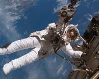 Washington (AFP) April 13, 2010 US astronauts on Tuesday completed the third and last space walk of their mission to the International Space Station (ISS), NASA said. The outing kept mission specialists Rick Mastracchio and Clayton Anderson outside the ISS for six hours and 24 minutes, and was the sixth space walk for both astronauts. During the space walk, the two astronauts finished installing a new ammonia tank for the ISS's cooling systems, relocated a portable foot restraint, and prepared cables on a truss for a space-to-ground Ku-band antenna. The latter two chores had to be completed ahead of space shuttle Atlantis' mission to the ISS next month. The space walk took longer than originally scheduled because the astronauts had problems stowing the depleted ammonia tank assembly on a carrier in the shuttle's cargo bay. The empty tank will be brought back to Earth. After wrapping up the space walk, the shuttle and ISS crews continued to unload the Leonardo Multi-Purpose Logistics Module and transfer 17,000 pounds (7,711 kilograms) of science racks and other supplies from the shuttle into the station. This is the final roundtrip to the station for the 21-foot-long, 15-foot-diameter (6.4 x 4.5 meters) Leonardo. Once back on Earth, the module will be reconfigured with increased shielding on the outside for a shuttle mission in September, when Leonardo will be left on the station as a permanent module. The shuttle mission is the fourth from last before the shuttles are retired, and the space walk was the 115th based out of the ISS, which is nearly completed -- 12 years after the first part of the orbiting space station was launched in 1998. Discovery is due to return to Earth on Monday after a 14-day mission in space, or a day longer than initially planned. The extra day in space was added after the Ku-band antenna on board the shuttle stopped working on the first day of the mission. Ku-band communications systems are used to transmit data -- including scans and videos of the shuttle's heat shield -- from space to mission control. Since space shuttle Columbia broke up on re-entry into the Earth's atmosphere in February 2003, NASA has meticulously inspected the heat shield on the shuttle fleet before re-entry to make sure the protective panels have not been damaged by space debris or small meteorites. The inspection usually happens after the shuttle has undocked from the ISS. But because the shuttle's Ku-Band communications system was not working, the Ku system on the ISS transmitted the heat shield video and laser scan to mission control for experts to analyze. The shuttle's heat shield is subjected to temperatures as high as 1,500 degrees Celsius (2,732 Fahrenheit) due to friction on reentry.