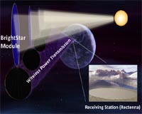 PowerSat Corporation's first patented technology, BrightStar, allows individual powersats to form a wireless power transmission beam without being physically connected to each other. This "electronic coupling," conceptually similar to cloud computing, effectively eliminates the need to handle large (gigawatt) levels of power in a single spacecraft. Because of BrightStar, one transmission beam may now come from hundreds of smaller powersats.