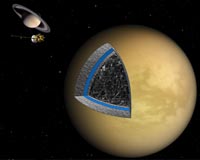 Why does Titan, Saturn's largest moon, have what looks like an enormous white arrow about the size of Texas on its surface? A research group led by Jonathan L. Mitchell, UCLA assistant professor of earth and space sciences and of atmospheric and oceanic sciences, has answered this question by using a global circulation model of Titan to demonstrate how planetary-scale atmospheric waves affect the moon's weather patterns, leading to a "stenciling" effect that results in sharp and sometimes surprising cloud shapes. "These atmospheric waves are somewhat like the natural, resonant vibration of a wine glass," Mitchell said. "Individual clouds might 'ring the bell,' so to speak, and once the ringing starts, the clouds have to respond to that vibration." The fascinating clouds, including arrow-shaped ones, that result from the atmospheric waves can cause intense precipitation - sometimes more than 20 times Titan's average seasonal rainfall - and could be essential in shaping Titan's surface by erosion. The research was published Aug. 14 in the online edition of the journal Nature Geoscience and will be published in an upcoming print edition. Mitchell and a colleague have described Titan's climate as "all-tropics" - the entire planet experiences the types of weather phenomena that on Earth are confined to the equatorial region. "Our new results demonstrate the power of this analogy, not only for general features of Titan's climate but also for individual storms," Mitchell said. "In future work, we plan to extend our analysis to other Titan observations and make predictions of what clouds might be observed during the upcoming season. "Titan's all-tropics climate gives us the opportunity to study tropical weather in a simpler setting than on Earth," he added. "Our hope is that this may help us understand Earth's weather in a changing climate." NASA's Cassini Spacecraft has been in orbit around Saturn since late 2004 and has revolutionized our understanding of Titan, which is larger in volume than the planet Mercury and the second largest moon in the solar system after Jupiter's Ganymede. Titan has a thick nitrogen atmosphere and experiences rain made of natural methane gas. "Titan is like Earth's strange sibling - the only other rocky body in the solar system that currently experiences rain," Mitchell said. Titan is an alien world, but strangely not so different from Earth. Like Earth, the main component of its atmosphere is molecular nitrogen. Water, too, is abundant on Titan, although it is all frozen in the crust at very low temperatures. Methane is thermodynamically active in the lower atmosphere, and much like water vapor on Earth, Titan's methane forms clouds, precipitates and is resupplied from surface sources, Mitchell said. The runoff then weathers the cold surface of Titan, creating what appears to be river patterns. Scientists think that Earth, shortly after it formed an atmosphere, had large amounts of methane and very little oxygen. Methane provided an important greenhouse warming that probably prevented Earth from staying perpetually in a completely frozen state that otherwise would have resulted from the weaker sunlight from the very young sun, Mitchell said. "Therefore, by studying Titan's modern climate, we may gain new insights about the way the early Earth's climate was," Mitchell said. He and his research group have developed an atmospheric model to study the climate and cloud patterns of Titan. Co-authors on the Nature Geoscience research are Mate Adamkovics, a project scientist with UC Berkeley's astronomy department; Rodrigo Caballero, a professor of meteorology at Sweden's Stockholm University; and Elizabeth P. Turtle, a research scientist with Johns Hopkins University's Applied Physics Laboratory.